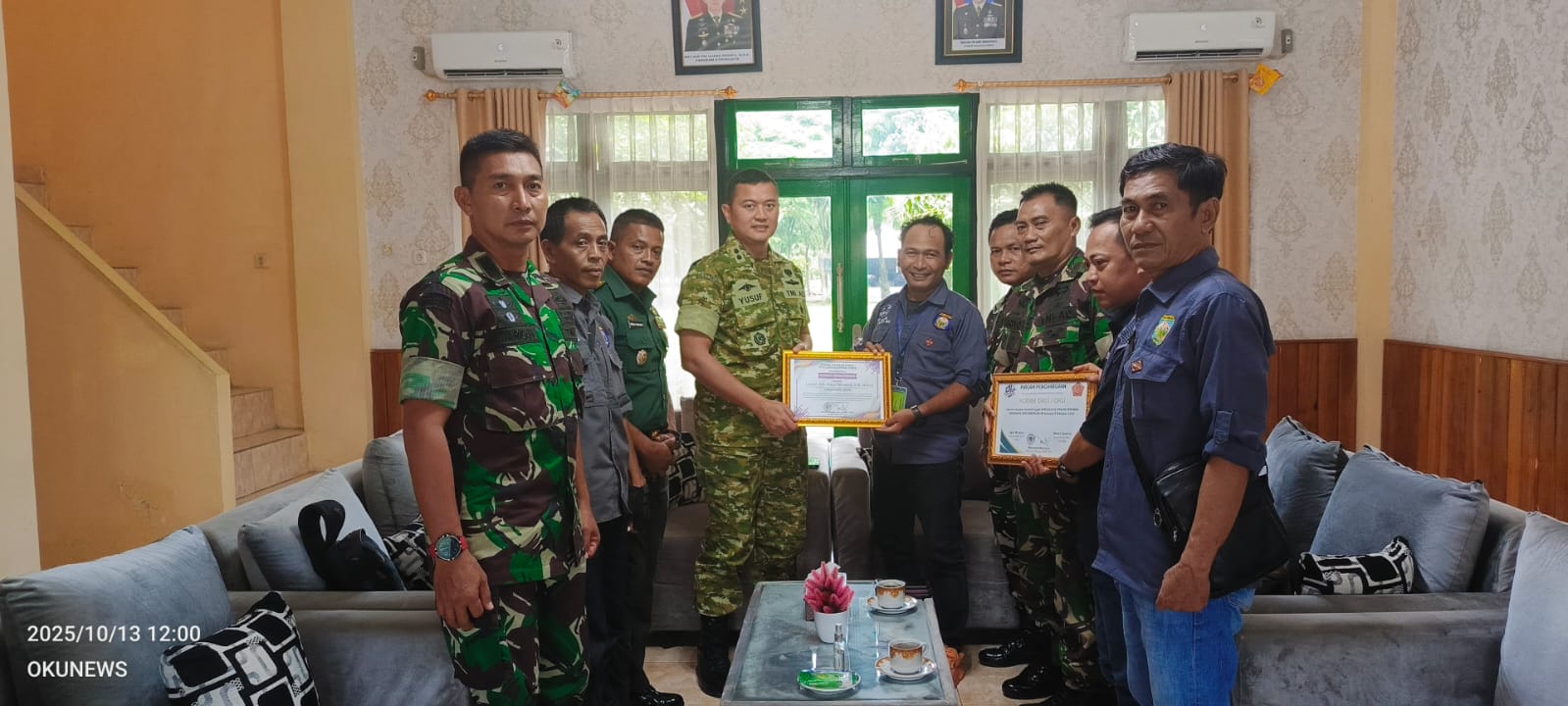 Penyerahan penghargaan dilaksanakan di Makodim 0403/OKU dan diserahkan langsung oleh Agus Maulana, Ketua DPC PJS Kabupaten OKU, mewakili Ketua Umum DPP PJS, Mahmud Marhaba, S.Pd., M.I.Kom., C.MTr pada hari ini Senin, (13/10/2025).